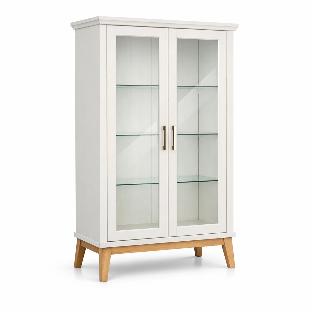Vitrine MDF Glas Weiß Türen 110x40x185 cm