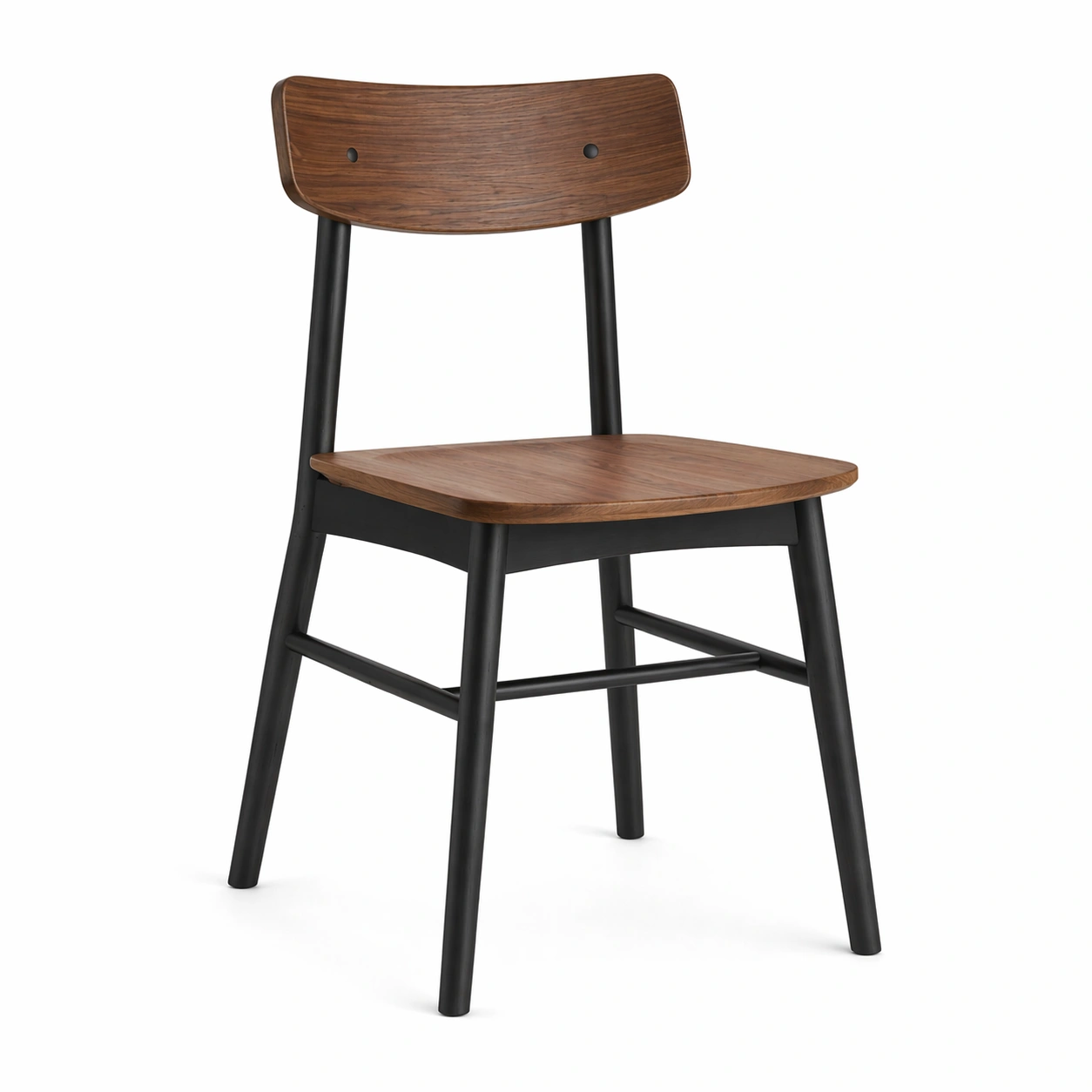 Materialien: Sitzfläche und Rückenlehne aus furniertem Holz, Gestell aus pulverbeschichtetem Stahl.